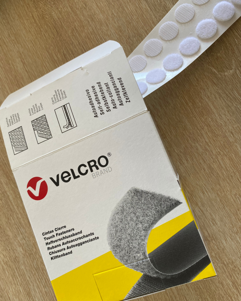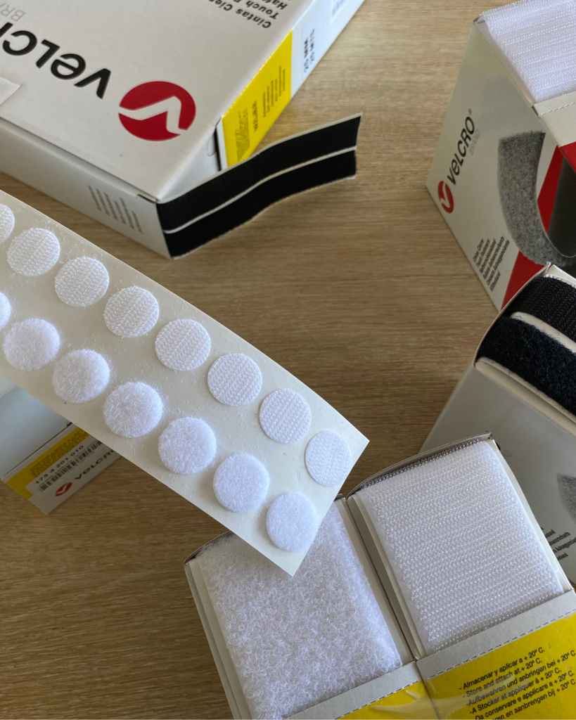 - Velcro ® adhésif : idéal pour les tissus plus épais ou lorsque la couture n’est pas possible.