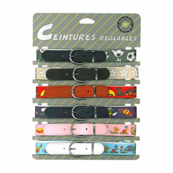 Ceinture enfant élastique - Longueur : 68 cm (réglable) - Largeur : 25 mm - Motifs assortis livraison aléatoire