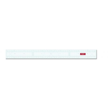 Cette règle transparente possède une double graduation intérieure et extérieure. Son écriture turquoise permet une meilleure lecture sur les tissus clairs et foncés.