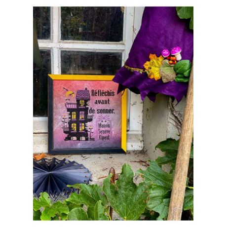 Isabelle Haccourt Vautier raconte, à la manière d’une gentille sorcière, des histoires à broder pas du tout effrayantes sur d’incroyables toiles colorées réalisées par Jean-Michel Chemin.