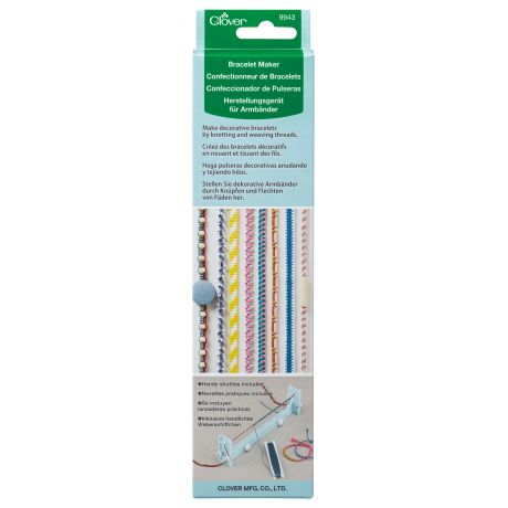 Pour créer des bracelets, placez un fil de chaîne sur le Confectionneur de Bracelets et utilisez une navette et un autre fil, en intégrant des techniques de tissage et de nouage.