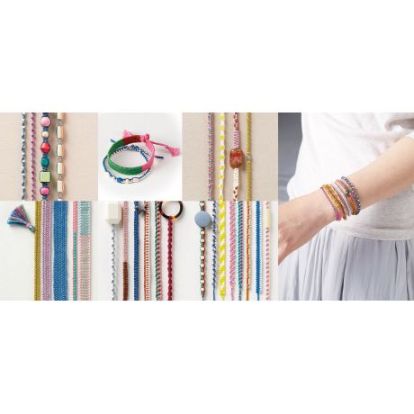 Créez 8 styles différents de bracelets avec une variété de fils décoratifs, laines et perles.