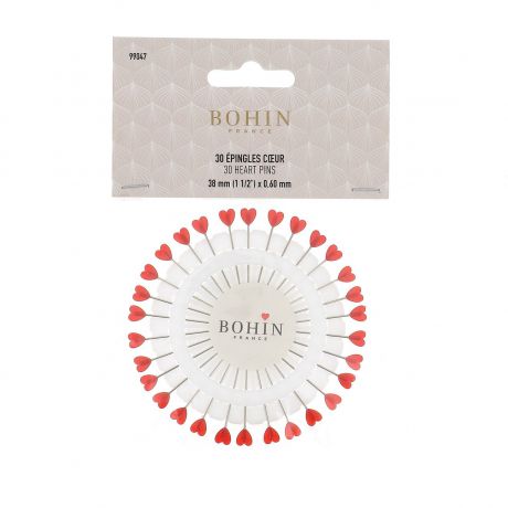 Retrouvez la qualité des épingles BOHIN avec, comme toujours, une glisse et une souplesse légendaire. Le disque contient 30 épingles fantaisie cœur qui permet le rangement entre les projets. Les têtes en plastique plates et rouges seront bien visibles sur les tissus. Ces épingles sont proposées en diamètre 0,60 mm pour une longueur de 38 mm.