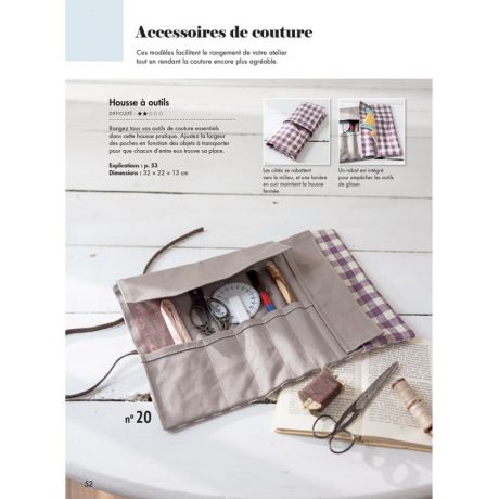 Ils se confectionnent sans patrons, il vous suffira de reporter sur la toile les mesures indiquées dans chacun des tutoriels. A cela, s’ajoutent de nombreux accessoires aux fermetures zippées avec des explications en pas à pas vous assurant une technique de pose absolument parfaite.