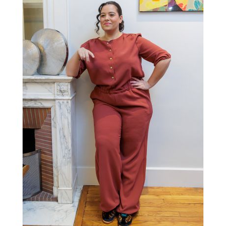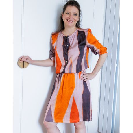 Ce patron vous permet de créer une blouse, une robe, un combishort ou une combinaison, avec ou sans manches. Avec ses 8 possibilités en un seul patron, il s’adapte parfaitement à toutes vos envies.