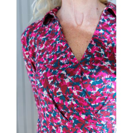 Ce modèle est idéal dans des tissus de poids moyen comme le coton, la viscose, le lin ou un crêpe fluide pour un tombé élégant.