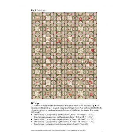 Cet adorable patchwork est facile à confectionner pour les fêtes ! Il s’agit d’un motif d’étoile à huit branches très simple, auquel on a ajouté une touche d’éclat avec des bandes de séparation étroites et des petits carrés d’un bordeaux intense. Dans cette version du quilt, nous avons choisi une palette de vert et crème. Les tissus utilisés proviennent de la collections Merry Little Christmas, sans oublier un tissu couleur pin de la collection Creating Memories, et un tissu Tea Towel Basic tissé, avec des rayures rouges et blanches.