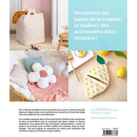 Les modèles expliqués dans ce livre permettent d’obtenir des accessoires de déco personnalisés tout en acquérant des bases solides. À chaque réalisation, vous apprendrez des techniques indispensables : coudre en angle ou en arrondi, poser un biais, réaliser une coulisse, créer un matelassage...