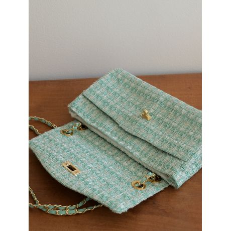 Edgar de Ancea Paris est le sac classique chic par excellence. Une forme rectangulaire avec un rabat arrondi, un joli fermoir bijou rotatif et une chaîne doublée qui permet de le porter à l’épaule, à la main, ou en bandoulières. Le sac est doublé et comprend une poche plaquée devant, sous le rabat et deux poches intérieures dos.