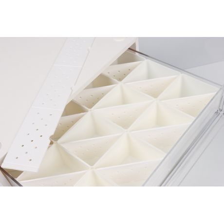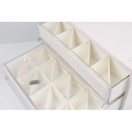 Chaque caisson dispose de 2 tiroirs profonds, équipés de parois amovibles pour créer des compartiments sur mesure.