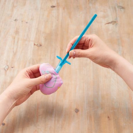 Insérez la ouate dans la seringue, puis poussez-la délicatement à l’aide du bâtonnet pour la répartir uniformément dans votre création, même dans les bras, jambes et petits détails.