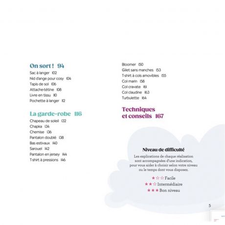Découvrez 50 vêtements et accessoires : bavoirs, gigoteuses, bloomers mais aussi sacs à langer et nécessaires de toilette ainsi que de nombreuses décorations pour la chambre.
